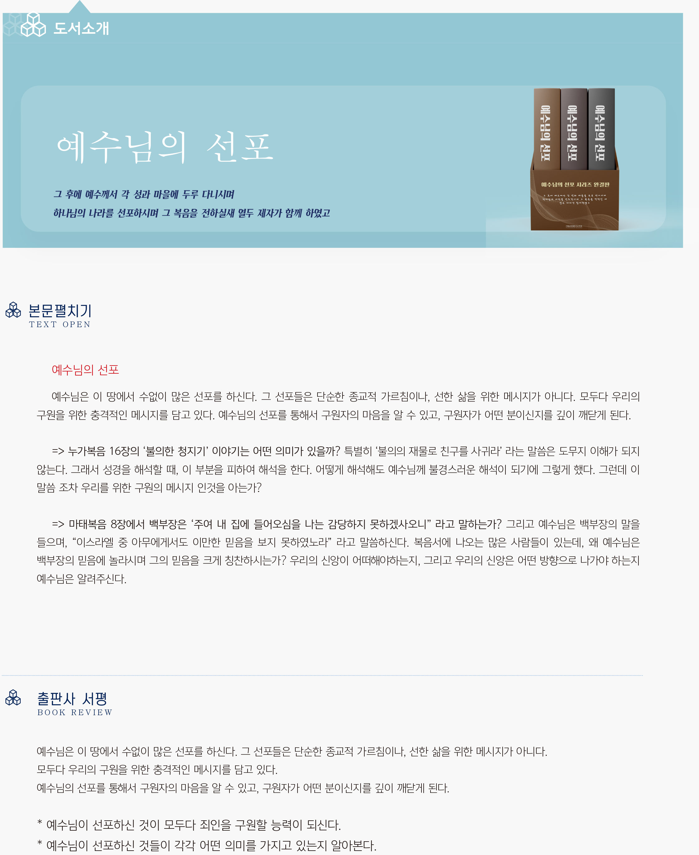 HOME > 도서 > 출간예정 > 예수님의 선포